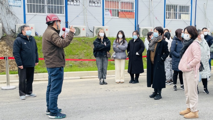 新校区进展一直备受商学院全体教职工关注。今年8月底,学校新校区建设一期项目一标段顺利封顶。12月2日,在新校区现场,校基建处处长王卫热情接待了商学院全体教职工,为大家详细介绍了新校区规划设计、区域功能定位、空间布局构思、工程施工进度以及建筑特色等情况。看着如火如荼的建设场景,大家纷纷为学校美好的未来而欢欣鼓舞,更加深刻领会了学校“速度、质量、规模、结构、效益、安全”的发展策略以及新校区建设的工匠精神和鲁班精神。