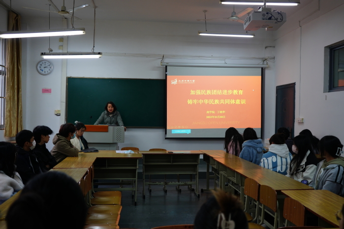 会上,丁晓华作了《加强民族团结进步教育,铸牢中华民族共同体意识》的主题教育宣讲,指出我国是统一的多民族国家,民族团结是我国各族人民的生命线。接着介绍了商学院现有少数民族学生概况,并表示学院一向高度重视少数民族学生的教育工作,少数民族同学应该努力为促进民族团结、维护祖国统一作出力所能及的贡献,如努力学习文化知识,拥护党和国家的民族政策,尊重其他民族的生活习惯,普及我国民族宗教政策等。