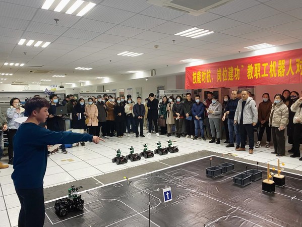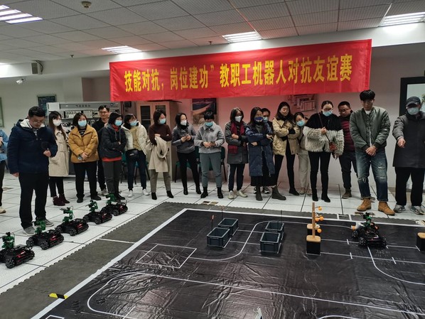 为提高学院教师机器人工程应用技术能力,增强全体教师的凝聚力和向心力,12月8日中午13点,信息工程学院分工会举办“技能对抗,岗位建功”教职工机器人对抗友谊赛,学院分工会全体教职工和七名开拓者协会学生志愿者参与本次活动。