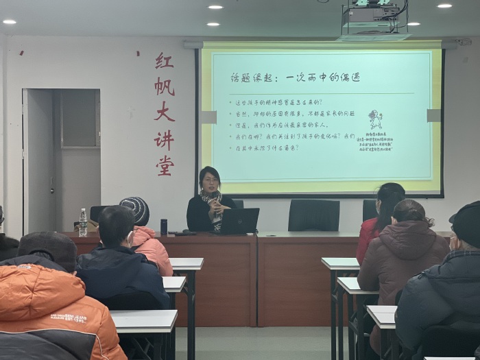 12月12日上午,朱文静副教授受邀到社区开讲家庭文化系列讲座第二讲,新和园社区党委班子成员与40余名党员和居民参与活动。热河南路街道新和园社区地处鼓楼区,辖区内教育资源丰富,学龄儿童和家长群体众多,整体学习氛围浓厚,家风建设和家庭文化一直都是居民群众关心的热点问题。本场以《我们和孩子》为题,朱文静老师从自己一次雨夜的偶遇讲起,在与一位罹患抑郁症的学生交流后,引发了对家庭亲子关系的深层思考——在孩子成长的不同阶段,我们作为孩子的父母或长辈,应如何处理和孩子各自的需求和期待?讲座现场,朱老师从闻一多的家教家风故事,到身边孩子的青春期逆反现象,通过一个一个小故事,层层递进地分析、探讨家长和孩子的相处之道,分享了“身传大于言教”、“学会陪伴和等待”、“调整角色定位”以及“得体退出”等建议。讲课中引述的名家名言,更体现了中外文化经典中蕴藏的育儿智慧。