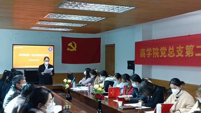 2022年12月13日下午,商学院第二党支部在综合楼411会议室召开接收预备党员支部大会。校党委书记王建明,校党委常委、党委组织部(统战部)部长韩承辉,商学院党总支部副书记(主持工作)董昕灵,商学院第二党支部党员及入党积极分子代表等参加会议。会议由党支部书记任静静同志主持。