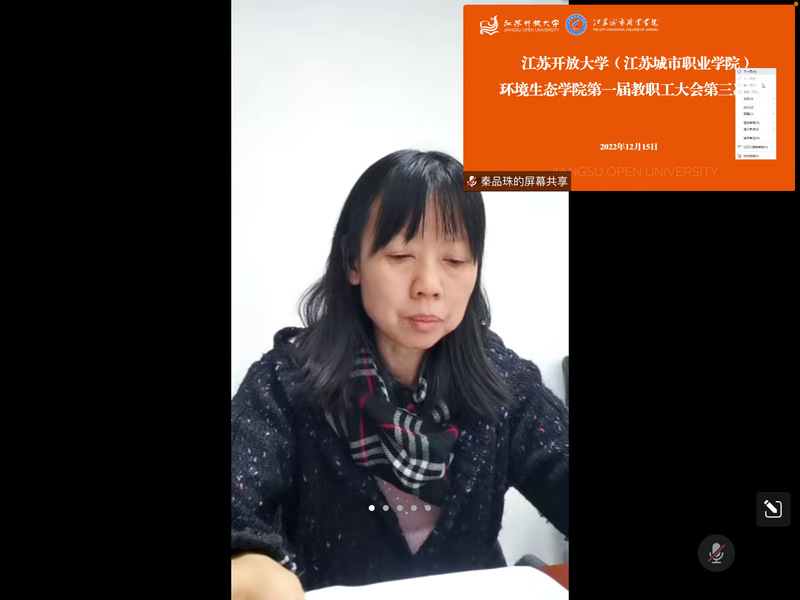 12月15日下午,因疫情因素影响,环境生态学院使用腾讯会议线上召开了第一届教职工大会第三次会议,大会由环境生态学院党总支部副书记、学院教职工大会执委会主任杨丹主持,学院全体教职工出席会议。