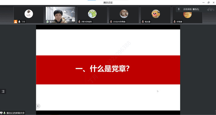 12月6日,我校新语学社开展党的二十大精神理论学习活动,专题学习《中国共产党章程》。社团指导老师马克思主义学院形势与政策教研部副主任董迅石主讲,社团全体共青团员线上参加学习,社团指导老师张丁月主持讲座。