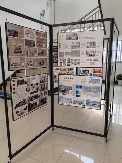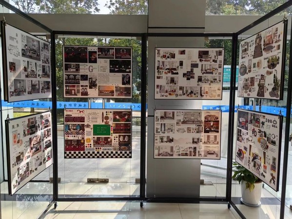 2022年12月12-18日,由设计学院蒋雪涵、徐茜老师指导的《室内陈设与软装饰设计》课程设计展在东校区实验楼一楼开幕,设计学院院长姜春艳、副院长孙培松、学院党总支部副书记院娅、学院办公室主任郭海燕、环境设计系副主任刘娜以及设计学院师生出席了课程展。