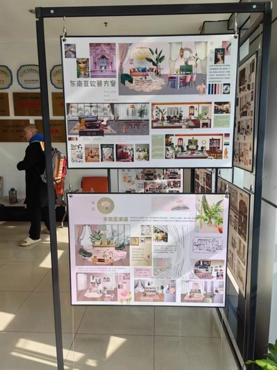 此次课程展旨在“以展促学、以展促教、以展促改”教学模式,课程结课后选出49件优秀作品,来自2020级室内设计住宅空间方向和商业空间方向的学生作品,作品类别包括新中式、新古典、地中海、东南亚、现代风和八种流行软装格调,学生们对住宅空间、商业酒店、办公空间、餐饮空间等做了软装方案的构思和设计,每一个作品都赋予空间一个实质的意义和生命力。通过作品看得出在教学过程中凝聚了指导老师付出的心血,也展现了学生扎实的专业基础。