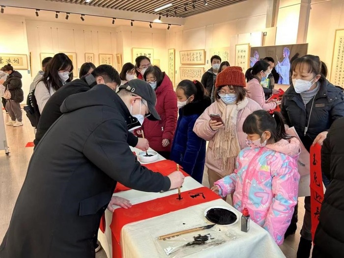 展览期间,我校教师张飞和青年书法家任东在展览现场,为市民朋友书写、赠送春联和福字,喜迎新春佳节!
