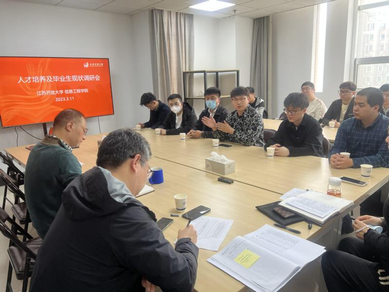 为进一步提高人才培养质量,适应社会发展需求,3月11日上午,信息工程学院在综合楼1101会议室召开人才培养及毕业现状调研会。会议由朱祎院长主持,党总支部副书记顾晨,计算机工程系主任程勇,机电工程系主任范骏,学工办主任刘文静,以及15位毕业生代表等参加了会议。