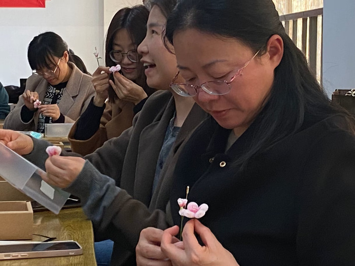 为庆祝三八妇女节,进一步丰富学院教职工业余文化生活,传承非遗文化和工匠精神,建筑工程学院分工会于3月15日中午1点在教学楼508开展主题为“非遗承匠心、绒花绽芳华”的三八节绒花制作活动,分工会全体女教师共同参与。