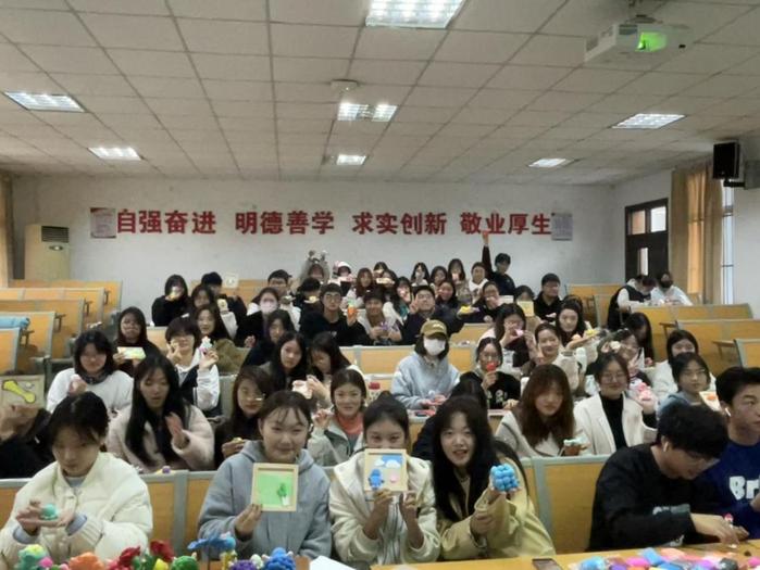 2023年3月21日中午,商学院学生会综合部开展的“信手‘粘’来 随心而动”黏土手工活动于教学楼阶梯教室1-1顺利举行,主要内容有黏土教学、黏土制作以及作品展示分享,活动吸引了许多同学前来参加。