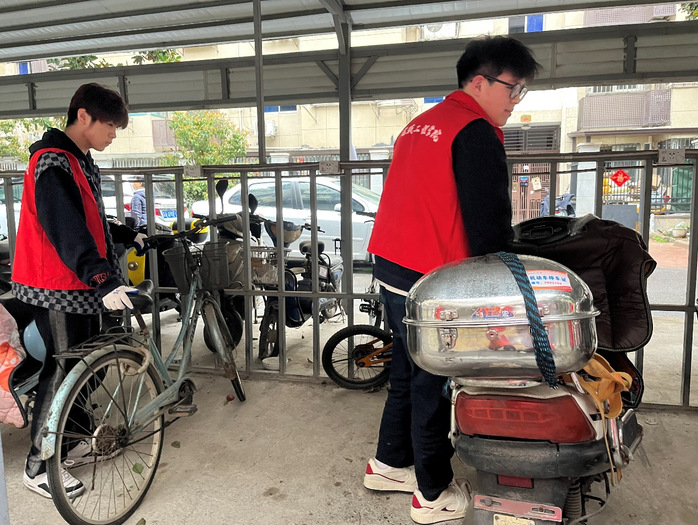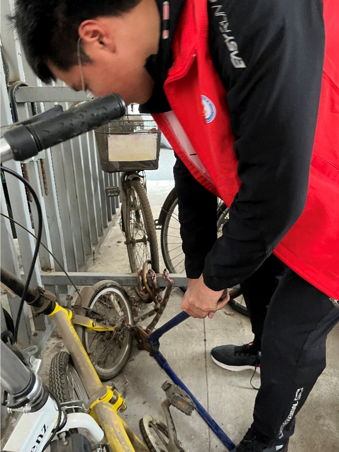 下午两点,志愿者队伍准备充足后到达爱达花园小区,街道工作人员给大家分配完任务后,清理工作有条不紊地展开。志愿者们首先清理出“僵尸车”和杂物,将其搬到三轮车上,再将它们统一运到回收点。对于那些使用率和流通率较高的车棚,志愿者们清理后将棚内打扫干净,车辆排放整齐,大大提高了车棚的有效使用空间。
