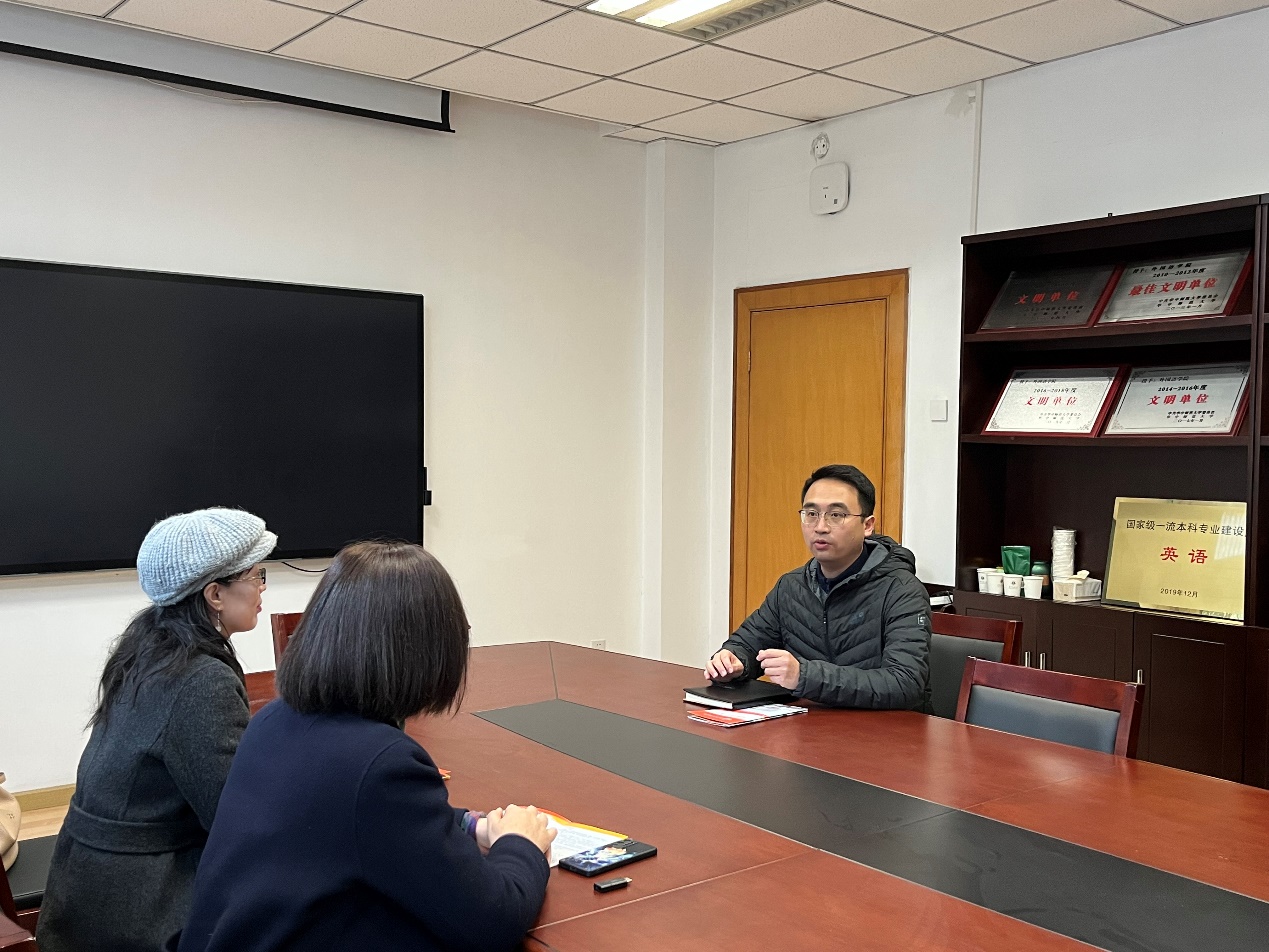 为深入推进学院人才引进工作,3月23日,外国语学院党总支部副书记、第一党支部书记周桔、院办田艳春一行前往华中师范大学外国语学院进行人才招聘宣讲,华中师范大学外国语学院书记陈哲接待。