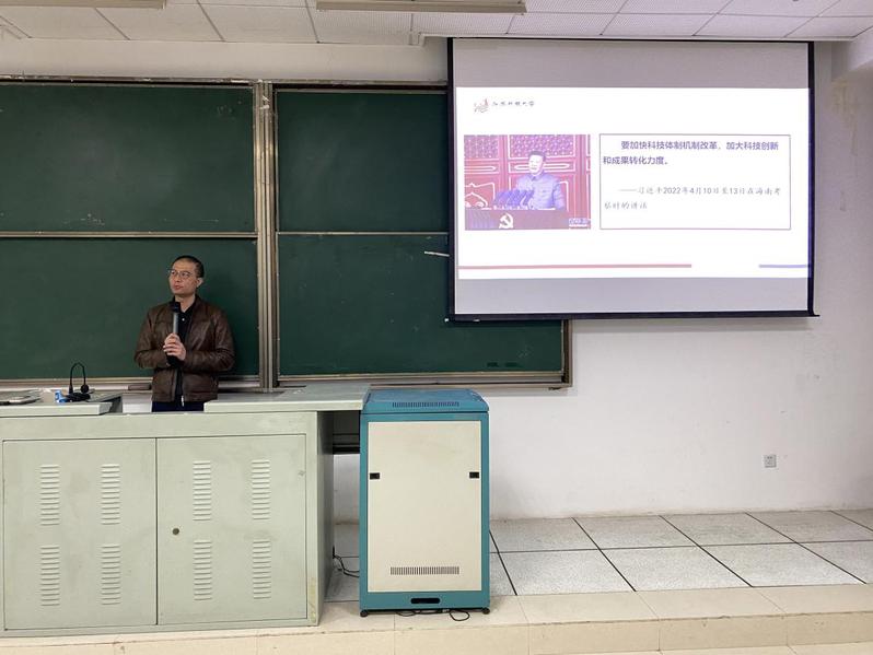 朱祎以“加快科技创新 构建发展新格局”为题,从“习近平总书记关于科技创新的重要论述”“为大力推进科技创新,学校2022年做了什么?”和“我们如何做得更好?”三个角度进行讲解。朱祎谈到,党的十八大以来,习近平总书记高度重视科技创新,发表一系列重要讲话。科技是国家强盛之基,创新是民族进步之魂。朱祎回顾了学校和学院2022年科研工作情况,分析了学院科研工作存在的差距和不足,明确了2023年科研目标任务,提出了加强改进措施和计划。结合学校科研大会精神,朱祎提出贯彻落实党的二十大对教育、科技、人才提出的新要求,在建设新型大学十年来创新科研工作实践的基础上,对标申硕指标,学院要在科研之路上开足马力,以时不我待、只争朝夕的奋斗姿态,潜心科研,不断推动学院高质量发展。