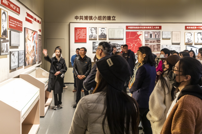第二阶段,老师们来到了南京江北新区红色广场参观学习。广场场馆内主展厅包括“两浦星火革命洪流”、“疾风劲草北岸屹立”、“救亡烽火坚持抗战”、“激战三浦解放南京”等篇章,系统反映了江北地区在中国共产党历史、中国革命史和中国工人运动史中重要的地位和贡献。在引导员的讲解下,老师们依次参观了红色文化各展馆,深刻领悟了老一辈革命先烈信仰坚定、不惧牺牲的伟大精神。