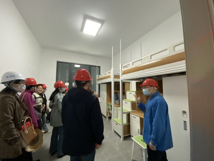 第一阶段,学院全体教职工来到新校区建设项目部实地参观。在基建处老师的安排下,老师们首先集中观看了新校区二期规划介绍视频,之后深入在建的学院实训楼现场、学生宿舍、轮训楼样板间等进行了实地参观。通过对新校区的实地参观,老师们不仅对新校区项目建设推进情况有了新的认识,也对学校的发展、办学实力、办学理念等有了更加深入的理解,对新校区建设项目的竣工和早日投入使用充满期待。