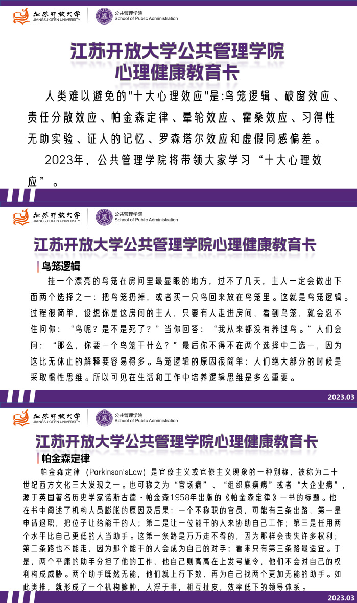 为了坚持常态化、长效化、个性化做好思想政治教育和心理健康教育协同育人,创新网络思政育人路径,推动育心育德和学历素质提升相结合,公共管理学院2023年继续为开放学员制作发放思政教育卡(电子卡)和心理健康教育卡(电子卡)。