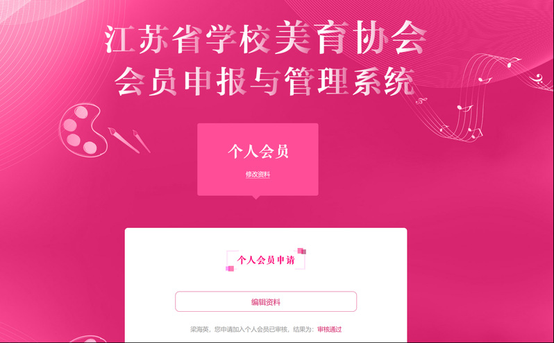 梁海英老师江苏省学校美育协会个人会员申请通过审核