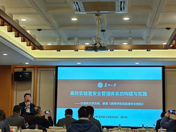 会议在南京国际展览中心三层多功能厅举行。本次年会共设三个专题系列报告,包括实验实践教学与金课建设(专题一)、实验室安全管理(专题二)、实验室设备管理与资源开放共享(专题三),与会专家学者围绕各专题带来了精彩的学术报告。专题一围绕虚拟仿真实验教学建设申报展开,与会专家学者分享了申报建设的经验和创新实践探索,内容丰富,启发性强。专题二着重介绍了实验室安全应急管理体系建设与实践、实验室安全体系构建与实施以及实验室危险源信息化管理,内容可学习性强。专题三围绕高校实验室数智化管理、开放共享展开,内容指导性强,对未来实验室设备管理具有引领作用。
