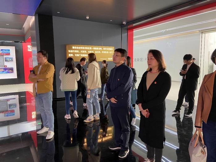 第二站,走进江北新区规划展览馆,在讲解员的带领下,同志们依次参观了“跨江起新城、规划拓新篇、城建绘蓝图、创新引未来”四个篇章的展区,近距离、全方位地了解了江北新区高质量发展的宏伟蓝图。江北新区规划展览馆以“三区一平台”的战略定位为主线,集中展示了新区聚焦打造“两城一中心”的发展目标。精美的图片展板、沙盘模型、多媒体影视以及满满“科技含量”的展品展现了一个光彩夺目、令人振奋的江北新区。通过参观,大家对新区的战略定位以及发展目标有了更深的认知。