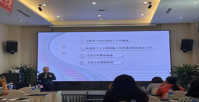培训会上,主讲专家李梁教授做了关于课程思政建设若干问题的思考、高校课程思政教学设计和技术的理论与实践探究等专题讲座。主讲专家孙华教授则聚焦党的二十大精神,重点解析了将党的二十大精神融入课程思政课程体系设计的具体举措及实施方法。