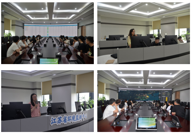 看系统平台,“处理”环境监测海量数据。在中心会商室,水质部高工夏文文给同学们讲解了全省水质自动监测系统建设及运行情况,同时从数据采集、数据审核、质量控制、运行维护和综合应用等方面解读江苏省水环境预警预报系统平台。大气部高工茅晶晶重点介绍了我省重污染天气监测预报预警平台的建设过程,并分析了空气质量预报业务流程、会商机制以及预报预警工作在环境管理所处的地位和发挥的作用。