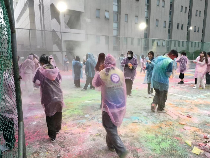 活动当天,同学们参与热情高涨,他们手持彩虹粉在应天校区网球场整装待发,期待着快乐的“彩虹之旅”。参赛者在学校网球场三个彩虹站中传递彩色“祝福”。现场分成“你画我猜”、“听歌识曲”、“猜谜”等环节,活动内容丰富。同学们之间互抛彩虹粉环节最为激动人心,各色的彩虹粉在操场上绽放开,形成一道别样的风景线,此环节也将活动气氛推向高潮,同学们的欢声笑语更是遍布操场每个角落。一场“战争”之后,同学们都变成五彩斑斓的了。