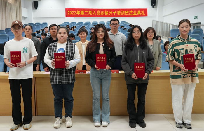 首先,丁姝娟同志对培训班工作进行小结,总结了培训班在组织管理、学员学习和培训考核等方面的情况,肯定了培训班取得的成绩,要求同学们坚定不移听党话、跟党走,深入学习贯彻落实党的二十大精神,并且从加强理论学习、坚定理想信念、发挥表率作用等三个方面对学员提出了希望。刘涛同志宣读了《关于表彰2022年第二期入党积极分子培训班优秀学员的决定》。艺术学院王瑾同学代表学员发言,介绍了大家在培训班的学习情况,汇报了通过本次培训在思想认识上的收获,号召全体学员以实际行动表达积极向党组织靠拢的决心。与会领导为应天校区优秀学员颁发了证书,这份荣誉将鼓舞着他们更加奋勇前进,希望他们积极向党组织靠拢,争取早日加入中国共产党。