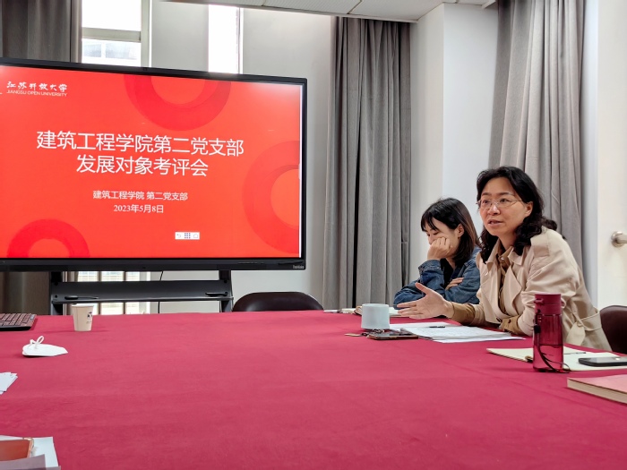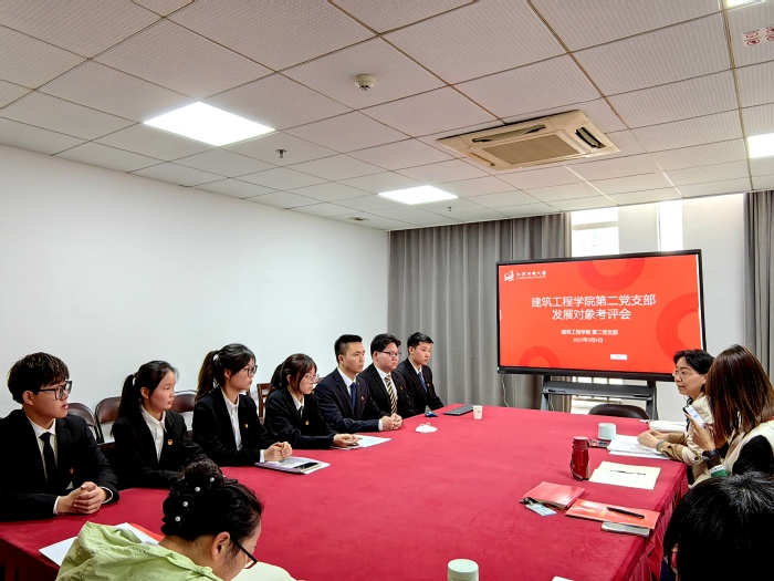 2023年5月8日,建筑工程学院第二党支部在综合楼919会议室召开学生党员发展对象支部综合考评会。会议由支部书记仲青主持,支部全体教师党员、考评对象及入党培养人参加会议。