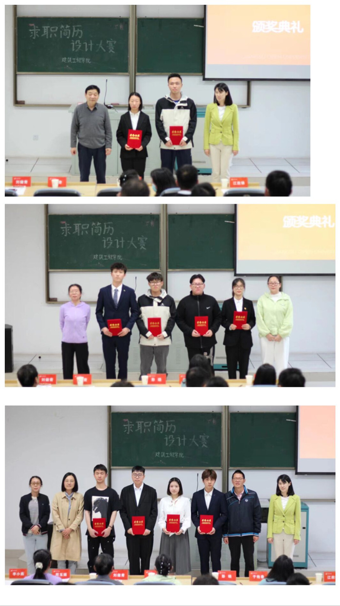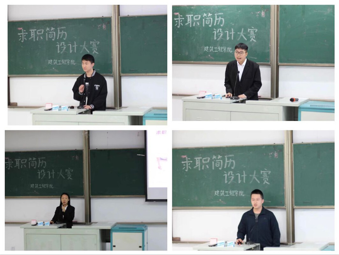为积极响应学校求职简历大赛活动的号召,提升我院学生简历制作水平和就业能力,引导同学们树立正确的择业观,建筑工程学院于5月9日中午在教学楼203教室举办了学院简历大赛决赛。校关工委刘健青,院学工办副主任彭晓,第二党支部书记仲青,第三党支部书记周玉娟,以及20级毕业班辅导员、班主任老师江胜锋、于艳春、李小燕、杨青参加活动。