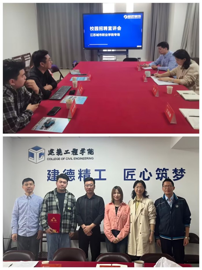 为全面提高人才培养质量,提升学生就业竞争力,5月10日上午,应学院邀请,校友企业南京鲸匠装饰设计工程有限公司营销总监张杨、培训部部长蒋燕燕、首席设计师汤少衡(原2013级建筑室内设计校友)一行来学校开展校企合作洽谈,共谋发展。建筑工程学院副院长林军、副书记徐亚、建筑装饰系主任王烨和就业干事江胜锋参加座谈交流。会议由徐亚主持。