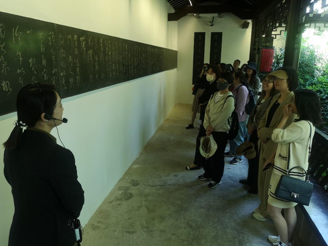 在这里,党员教师们不仅欣赏了“当代草圣”林散之先生寒灯八十余霜铸就的诗书画艺术“三绝”;当代最杰出的女书法家萧娴先生遒劲有力、颇具阳刚风韵的大家风范;文字学家、史学家、艺术家于一身的胡小石先生渊博的学识……更是通过一段段广为流传的故事,领略了各位艺术大师德才兼备、德艺双馨的精神品格。林散之先生人生经历多次挫折,在左耳失聪,右手残存三根手指的情况下依旧积极创作,作品中处处传达了乐观向上的人生态度。萧娴先生广收弟子,不论家境,不论资质,只要喜爱书法,皆慷慨施教,且倾心培养,其中不少已成著名书法家,受到学生及后世的广泛爱戴和瞻仰。胡小石先生风骨凛凛,爱生如子,授课之余,常邀学生踏青登高、共品家宴……几位先生道高为师,身正为范,给外国语学院的教师们上了一节师德师风的示范课,大家深刻体会到为师为教,必须坚持立德树人,做到春风化雨、以文化人、持之以恒。