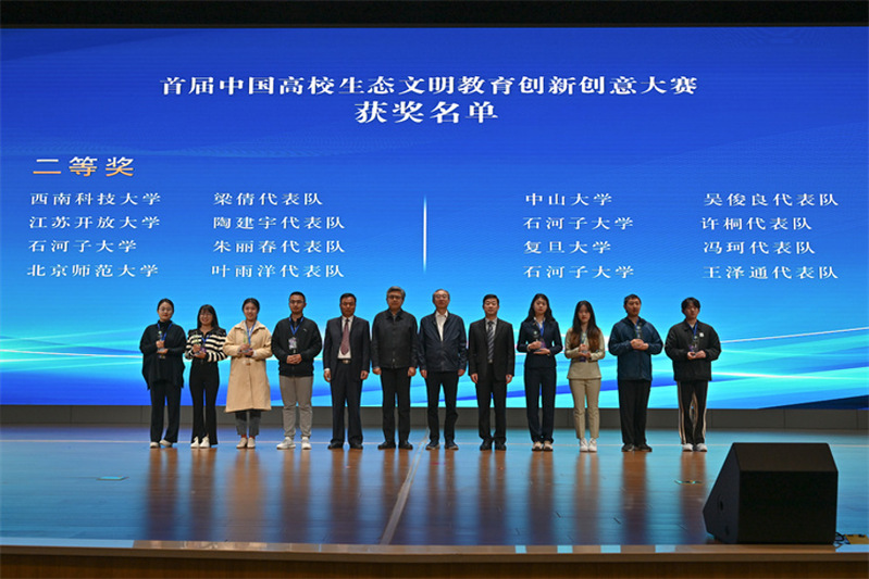 近日,首届中国高校生态文明教育创新创意大赛颁奖典礼在山东生态文明学院举行。此次颁奖典礼由中国高校生态文明教育联盟、中国生态文明研究与促进会、山东生态文明学院、南开大学生态文明研究院联合主办。我校马克思主义学院团队教师代表宋小洪,学生代表陶建宇(2020级建筑装饰工程技术)、武莉婷(2020级环境艺术设计)参与本次颁奖典礼并做交流发言。