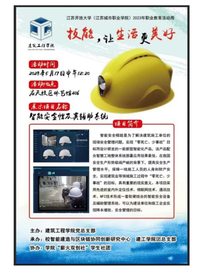 活动开始前,全体师生共同观看了《智能安全帽》视频宣传片,了解“技能:让生活更美好”的重要意义,活动由此拉开帷幕。本次活动主要分为两个阶段: