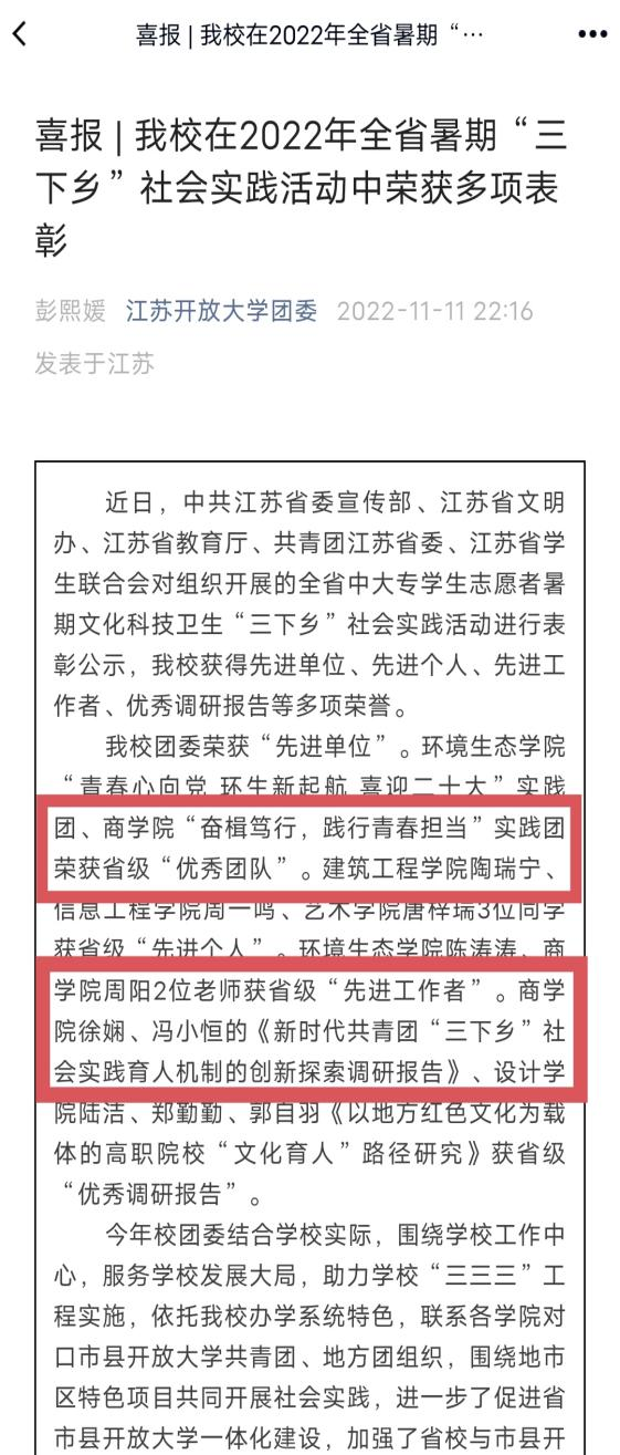 近日,共青团江苏省委做出表彰决定,过去一年全省各级团组织以习近平新时代中国特色社会主义思想为指导,学习宣传贯彻党的二十大精神,深入贯彻落实习近平总书记关于青年工作的重要思想和对江苏工作重要讲话重要指示批示精神,扎实推进共青团工作发展,涌现出一批展现新时代共青团良好风貌的先进集体和个人,其中我校商学院团总支部被授予江苏省“五四红旗团支部”称号。
