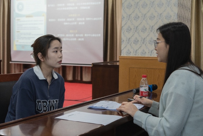 接着,董昕灵和尹世清共同进行人才培养基地授牌仪式和校企合作签约仪式,双方就具体合作进行深入探讨,建立沟通的长效机制,为进一步推进更深层次的校企合作奠定良好的基础。董昕灵代表学院给尹世清颁发商学院企业导师聘书,感谢江苏路铁传媒有限公司对学院就业工作的大力支持,期待后期发挥学院学科专业和人才智力优势,促进双方产教融合、服务人才供需对接、促进科研成果转化。活动最后,商学院、设计学院2023届毕业生进行现场简历投递和面试。