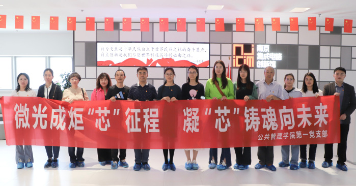 为深入开展学习贯彻习近平新时代中国特色社会主义思想主题教育,响应校党委“万人看江浦 拥抱新校区”专题学习调研活动的号召,5月23日下午,公共管理学院第一党支部全体党员赴桥林新校区参观建设进展,并前往南京集成电路创新馆开展了主题为“微光成炬‘芯’征程 凝‘芯’铸魂向未来”的特色主题党日活动。