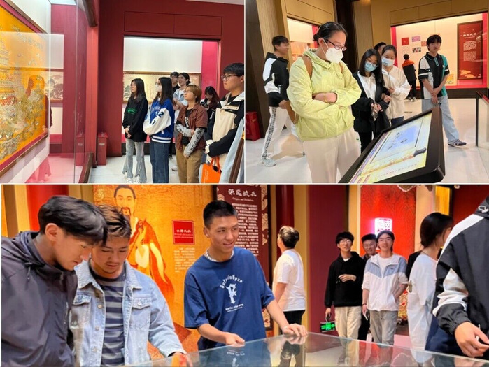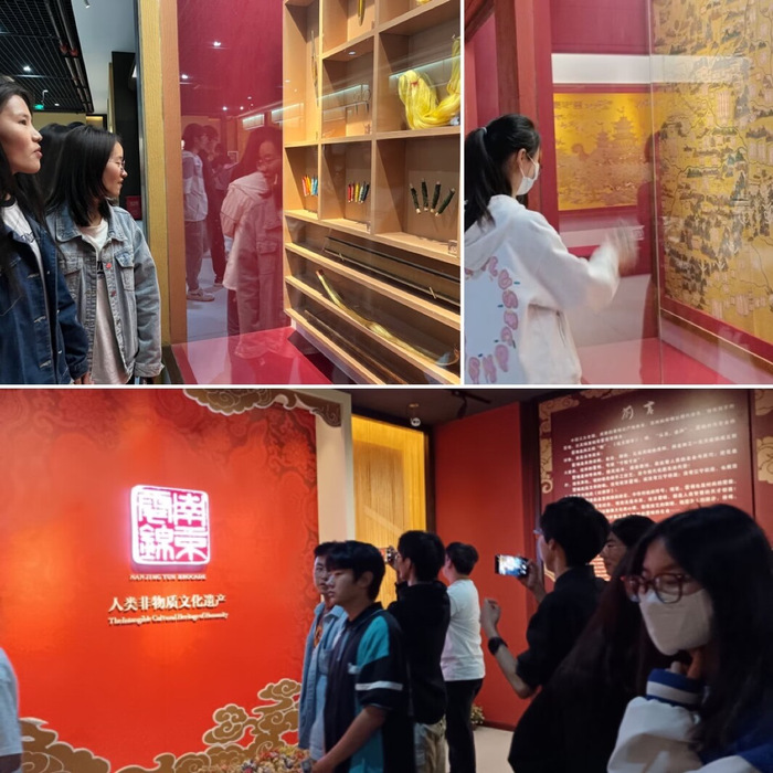 下午14:00,阳光灿烂,云锦博物馆机杼声声,师生怀着期待的心情,在仲青老师的带领下,大家依次参观了“云锦操作展厅”“云锦精品展厅”和“民族织锦表演厅”三个展厅。三个展厅各具特色,驻足凝望古老珍贵的物件,领略绣娘十指春风,一绣千年的魅力;侧耳倾听扣人心弦的故事,观看民族织锦的技艺,感悟少数民族团结,体会文化遗产带给我们的巨大力量。