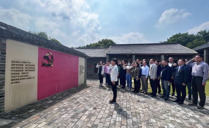 小组成员们跟随着自助语音讲解,通过一张张照片,一件件实物及一段段视频深入了解“三浦战役”发生的背景、过程及重要意义,穿越时空感受红色岁月中“三浦战役”的激烈战况,回顾“三浦战役”波澜壮阔的历史,感悟伟大的建党精神,更加深刻地认识中国共产党人的精神谱系和鲜明的政治品格。随后,全体党员面向党旗,重温入党誓词。