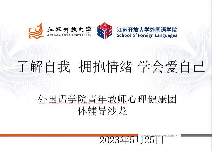 春日已去,夏意渐浓,为丰富青年教师的业余生活,增强教师队伍的凝聚力,促进青年教师和导师之间的交流,提高心理调适能力,构建和谐心灵,在“5.25”这个特别的日子里,在校关工委的科学引导和关怀下,外国语学院组织了主题为“解自我 拥抱情绪 学会爱自己”青年教师心理健康团体辅导沙龙。参加此次活动的有关工委老师张炳华、学院党总支部副书记章琼和学院近三年新进的青年教师和青年导师。此次沙龙活动带领者系学校兼职心理咨询师邹本平。