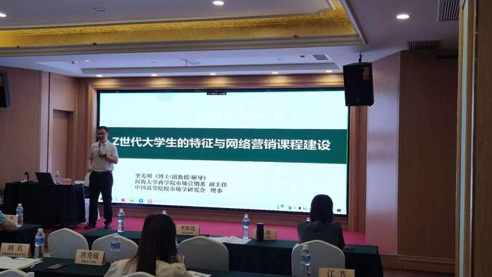 郭教授以“如何讲好《市场营销学》课程”为题,详细分析了新时代《市场营销学》的发展与变化,并提出了该课程的创新路径。来自南京财经大学的杨海龙副教授针对如何将企业实践引入市场营销课程进行精彩分享。西安理工大学经济与管理学院陈敬东教授以“《人气营商学》课程的理论创新”为题,阐述了该课程的改革与发展。河海大学商学院市场营销系副主任李光明副教授“基于Z世代学生的特征对网络营销课程建设”提出了自己的思考。