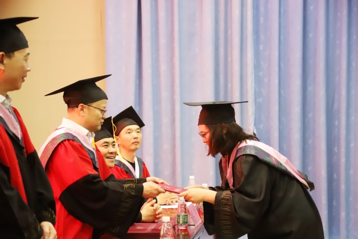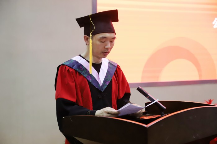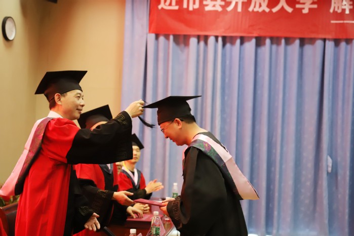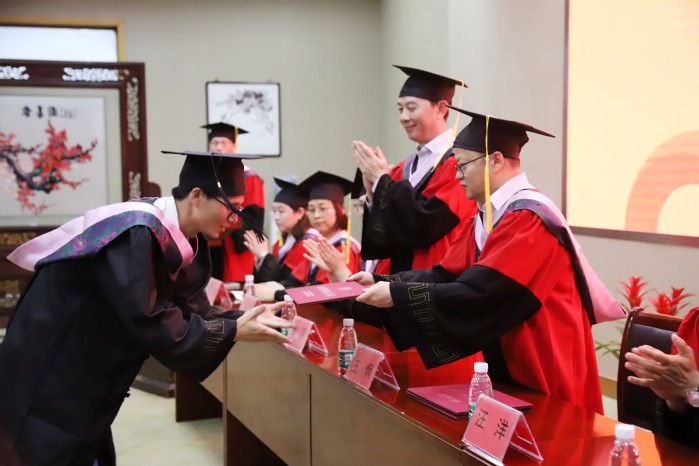 吴中开放大学党委书记、校长王炯为学员颁发学位证书,公共管理学院院长纪河教授为学员拨穗正冠。“导师团”进行观礼。学员现场鞠躬致意,感谢师恩。