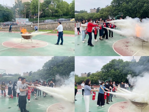 此次演练主要分为消防安全意识提升、灭火器分类使用、消防栓使用、应急疏散演练和实地灭火演练五大部分。首先,左克军处长以近年来高校实验室安全事故频发为例向设计学院全体教师讲解了消防安全的重要性和必要性,详细介绍了灭火器和消防栓的使用方法。随后,在保卫处的协助下,设计学院全体教职工及学生模拟消防栓喷水灭火;在人工烟雾模拟火情现场,演练了火情应急处置流程和火场逃生;并前往篮球场实操演练了灭火器的使用。