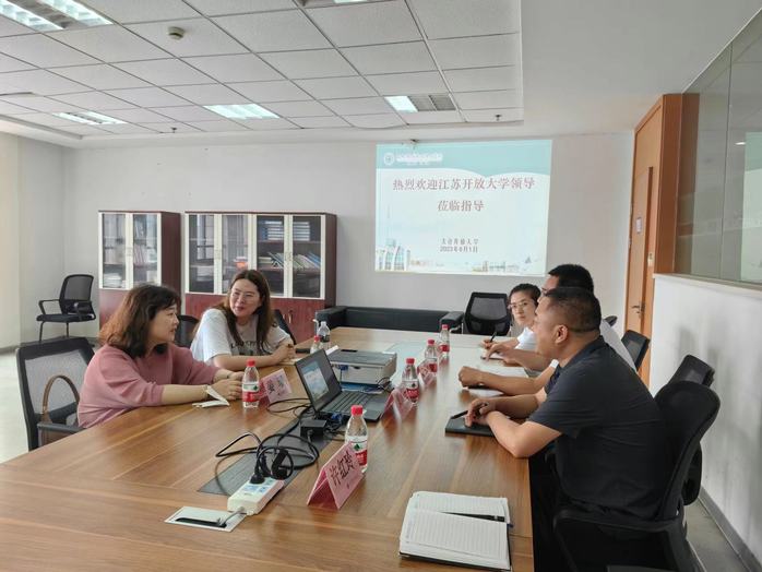 贾红圣就太仓开放大学的招生工作、开放学员管理、毕业论文等情况与调研组展开了交流,并对线下教学的后续开展和本科学员学士学位授予率的提升提出了宝贵建议。