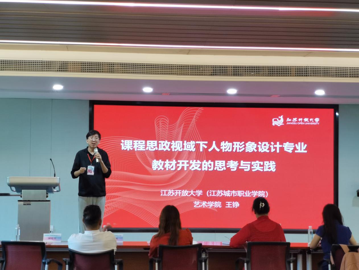 在主题报告环节,艺术学院副院长王铮作了《课程思政视域下人物形象设计专业教材开发的思考与实践》的报告。王铮结合担任多轮教育部教材建设评审经验,在主题报告中指出,传统的教材内容已经不符合国家对职业教育人才培养的使命要求,改造为弘扬社会主义核心价值观的课程思政教材刻不容缓;传统的教材视角已经不符合以学生为中心的教学关系,转化为学材势在必行;传统的教材形式已经不符合数字时代的学情与学习习惯,转变为数字化教材未来可期。四十分钟的主题报告受到了全国同行的高度认可。