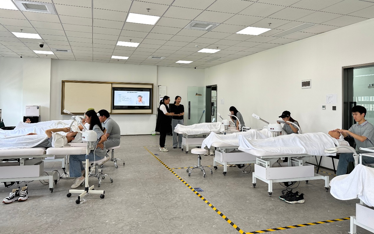 此次参观学习,葛主任详细地介绍了他们的课程设置与实施。师生主要参观了集红堂学校的皮肤护理和化妆美甲实训室,以及世界技能大赛训练基地,并在何玉老师的带领下实地上了一节实训课。双方还就实训方式、行业人才需求等方面做了深入的交流。本次探访与企业深入对接,发挥了校外实训基地优势。