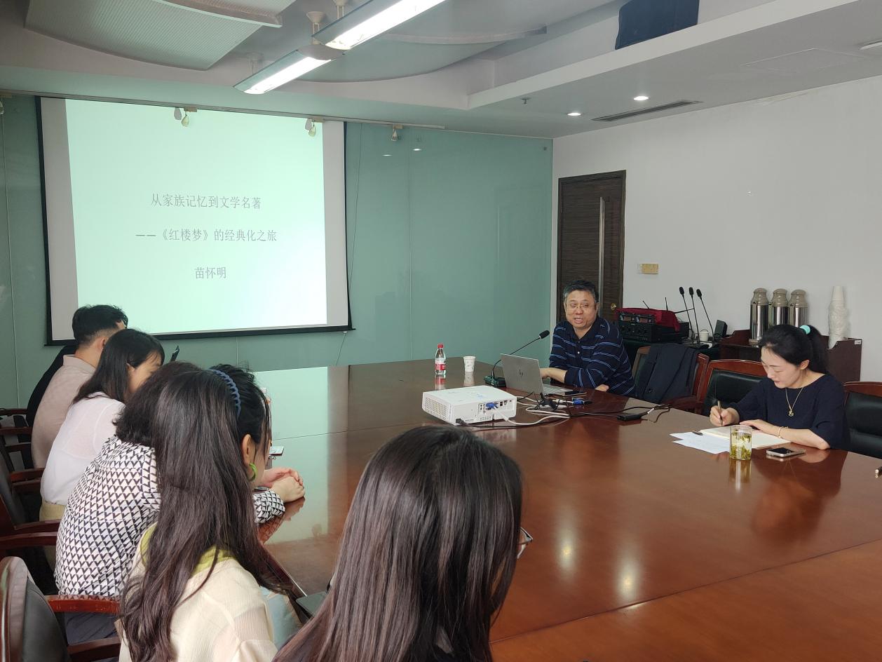 6月7日上午,艺术学院与江苏省红楼梦学会在定淮门校区综合楼二楼第三会议室联合举办学术活动,邀请南京大学文学院教授、博士生导师,中国民俗文学学会副会长,中国红楼梦学会副会长,江苏省红楼梦学会会长苗怀明,做题为“从家族记忆到文学名著——《红楼梦》的经典化之旅”的学术讲座。此次讲座由艺术学院院长、党总支副书记黄一斓主持,艺术学院全体教师参加讲座。