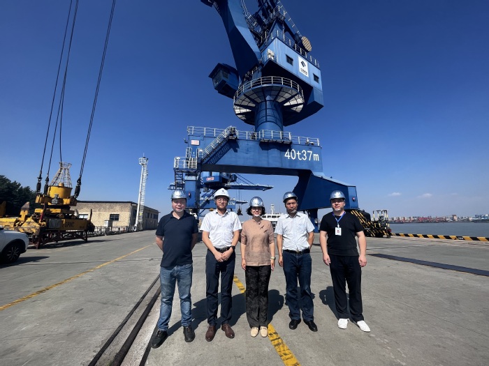 接着,商学院调研组来到了位于桥林的南京长江七坝港国际物流中心。在南京长江七坝港国际物流中心工作人员带领下,调研组成员参观了申通智慧物流园区和南京港江北集装箱码头,双方就校企深入合作等相关问题进行了探讨,并形成了初步的合作意向。