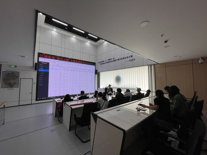 随后支部全体党员跟随大数据中心苏主任重点参观了江浦街道“城市云脑”大数据指挥中心。