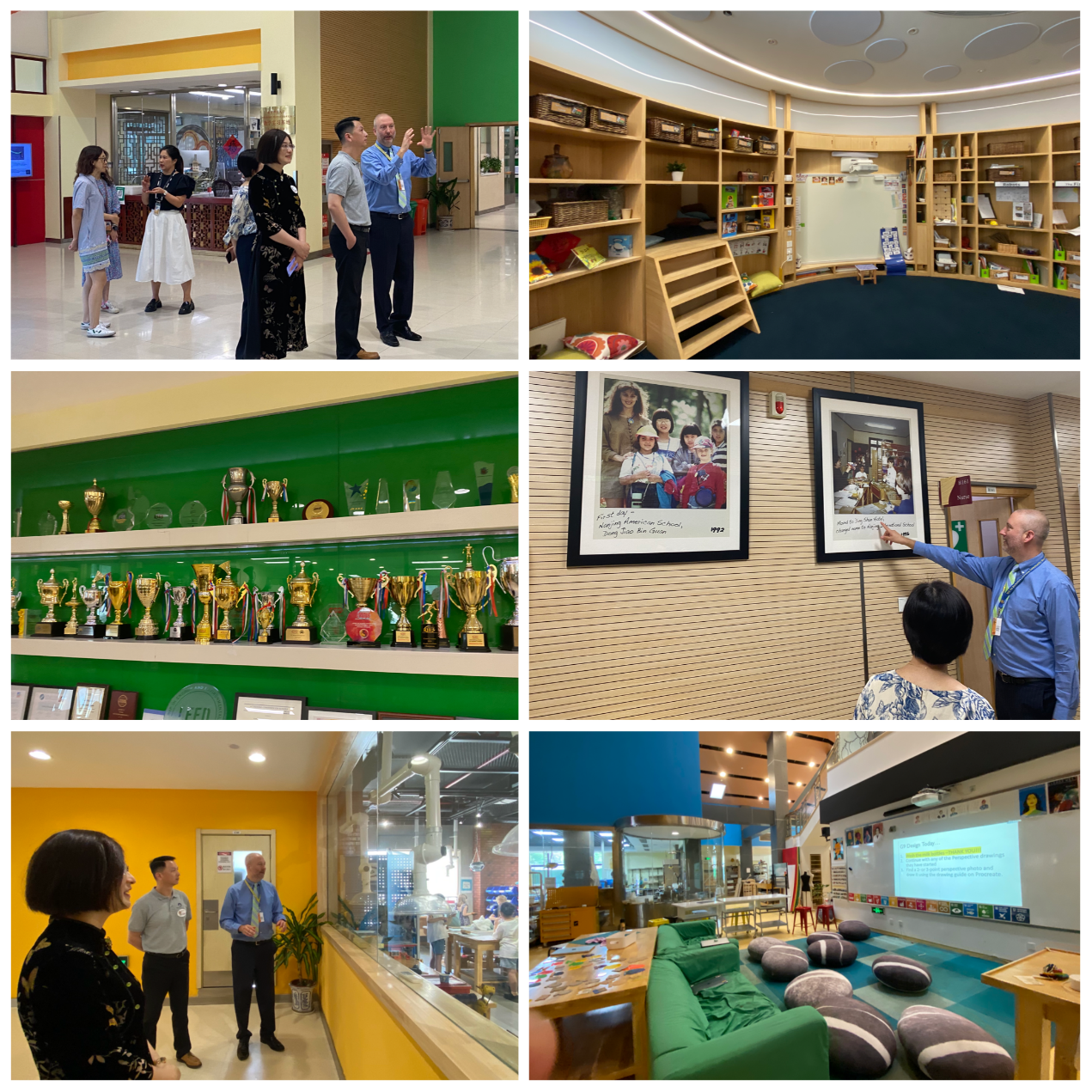 NIS始创于1992年,是中国大陆第一所IB一贯制国际学校,致力于激励国际视野、个人卓越和创新思维。位于仙林的校区占地85,800平方米,包含小学部和中学部教学楼、表演艺术中心、社区活动中心大楼以及花园式的户外空间。学院一行受到了该校教学校长Kasson Bratton的热烈欢迎。他带领学院依次参观了NIS的体育设施、教学设施、大礼堂,并向学院介绍了NIS成立背景、发展历史、校园文化、教学理念、学生构成等。NIS优美的校园、独特的教学模式、完备优质的设施给众人留下了深刻的印象。