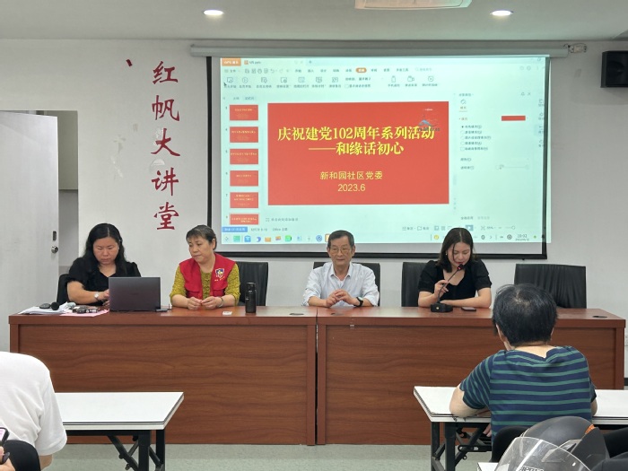 讲座结束后,周梦蝶老师在新和园社区党委举办的“庆祝中国共产党成立102周年系列活动——和缘话初心”活动中,讲述了自己入党的初心,表示我们要不忘初心、担当使命。