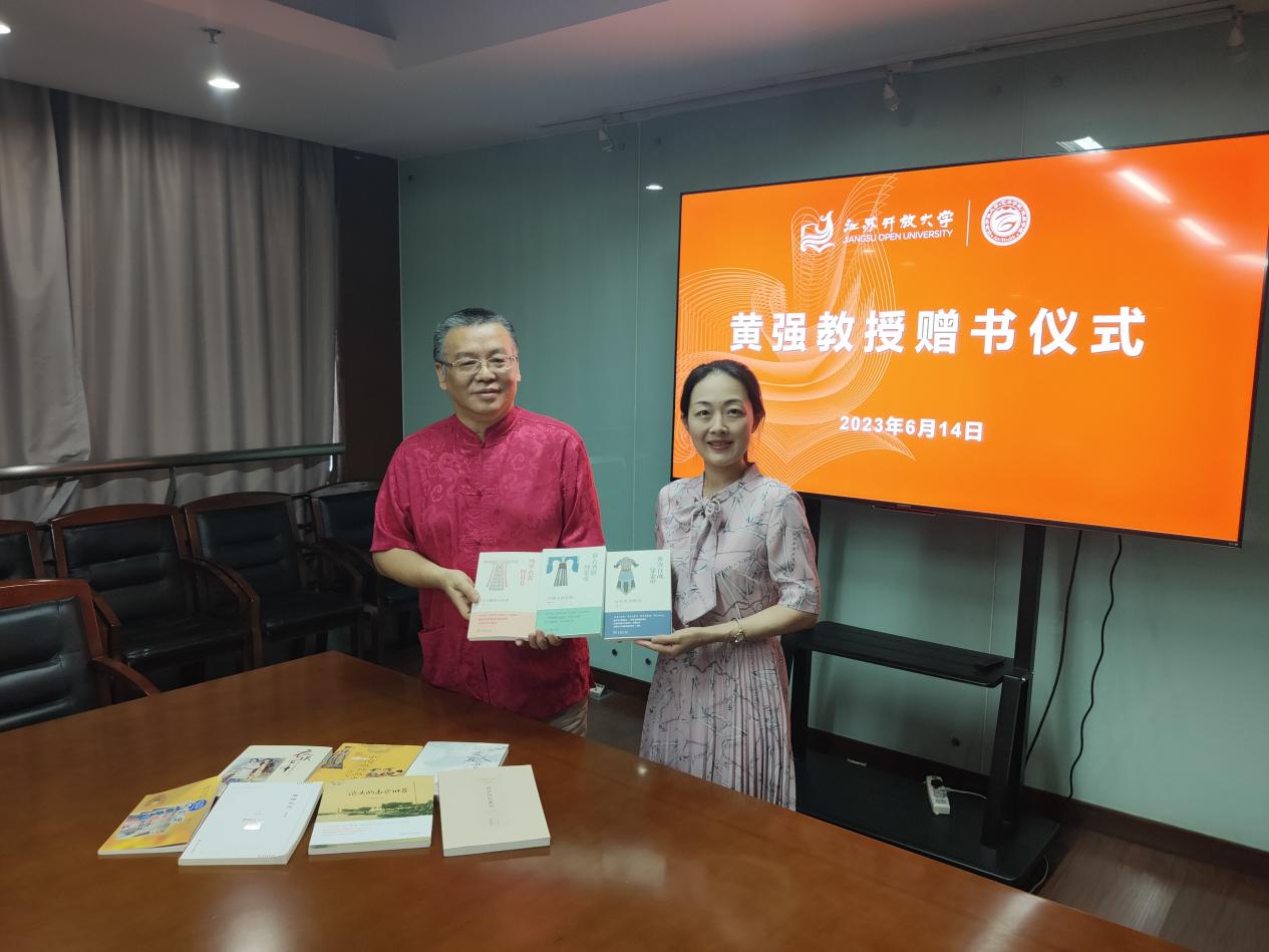 讲座前,黄一斓院长为黄强教授颁发了艺术学院特聘教授聘书,希望黄教授能够继续在艺术学院传授专业知识、交流学术思想。黄强教授则为艺术学院捐赠了自己创作的十本著作,供全体教师研究学习。